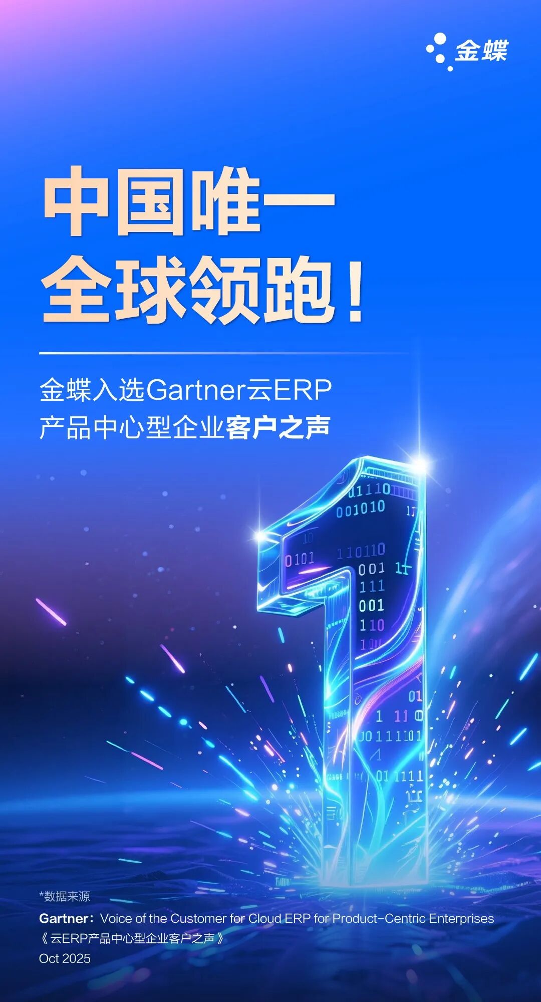 近日,Gartner发布了《2025年云ERP产品中心型企业客户之声》(Voice of the Customer for Cloud ERP for Product-Centric Enterprises)报告。金蝶作为中国领先的企业管理云SaaS服务商,以总体客户体验4.9分(满分5分)的高分强势入选,获评“卓越表现者”(Strong Performer),并成为本年度该报告中唯一上榜的中国厂商!