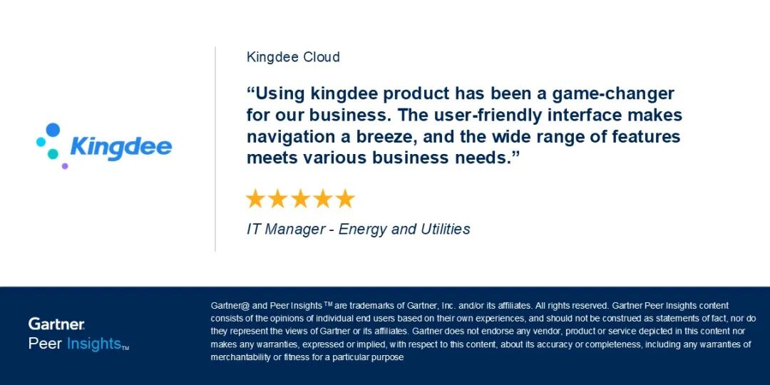 这一评分源自全球客户的真实评价,也标志着金蝶正获得越来越多客户的信赖,成为更多企业的共同选择。
